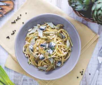 Main Courses Bavette with artichokes and sardines Bavette with artichokes and sardines is a tasty first course that combines the flavors of the land with the scents of the sea! 4.1 Average 1 h 10 min Kcal 664 READ RECIPE
