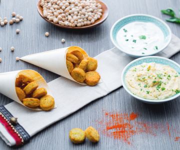 Appetizers Falafel with Quick Hummus and Yogurt Sauce Falafel with quick hummus and yogurt sauce is a crunchy and spiced Middle Eastern street food with a rich accompaniment: chickpeas take center stage! 4.7 Easy 40 min Kcal 1093 READ RECIPE