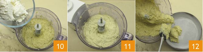 Finally, add the well-drained ricotta 10, blend again to obtain a homogeneous batter 11. Butter and flour a 9-inch mold, pour the batter here 12