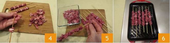 Once you have the meat cubes, skewer them 4. Repeat the process for all the arrosticini 5. Now heat a cast iron grill well and lightly oil it so you can easily turn the arrosticini during cooking.