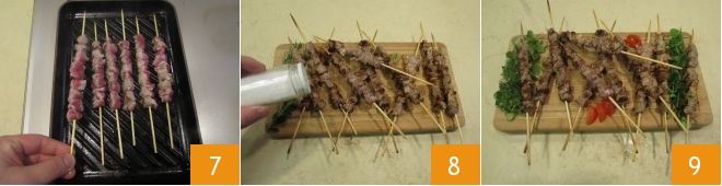 The cooking should take about 1 minute per side 7. Cook the arrosticini on both sides until you notice a slight crust. Salt 8 and garnish the plate with your arrosticini with rosemary and cherry tomatoes. Your arrosticini are now ready to enjoy 9!