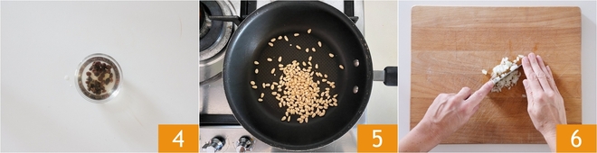Soak the raisins in cold water for at least 10 minutes 10. Toast the pine nuts in a non-stick pan for a few minutes 5. Finely chop the onion 6.