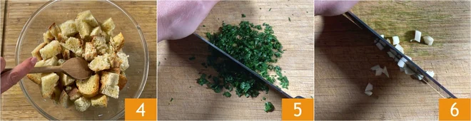 Stir with a spoon 4 and leave to rest for a few minutes, covered with plastic wrap. In the meantime, remove the germ from the garlic clove and then finely chop the garlic and parsley (5-6).
