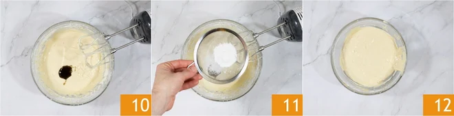 Flavor by adding the vanilla extract 10 and lastly, sieve the yeast 11. Stir one last time until homogeneous 12.