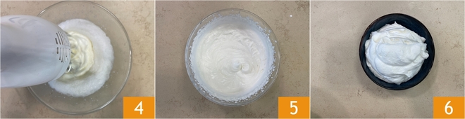 Start to whip the cream with a mixer equipped with clean beaters, at medium-high speed 4. To avoid splashes, you can cover the bowl with plastic wrap or use a long and narrow container, preferably glass. When the cream starts to thicken, slightly increase the speed and whip until it is stable, smooth, and soft 5. The chantilly cream is ready for your use 6.