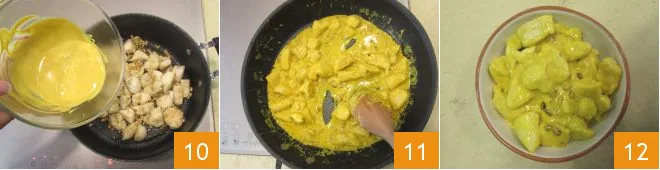 Pour the sauce into the pan 10 and stir over low heat for a few seconds, just long enough to mix it 11. Your chicken bites with yogurt and turmeric are ready to be served 12!