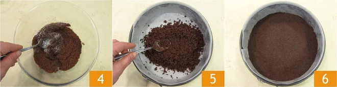 Mix with a spoon until you obtain a homogeneous mixture 4. Pour the mixture into a greased and parchment-lined 9-inch springform pan, then compact it with the back of a spoon both on the bottom and the sides 5. Let the base set in the refrigerator for at least an hour (or in the freezer for at least 30 minutes) 6.