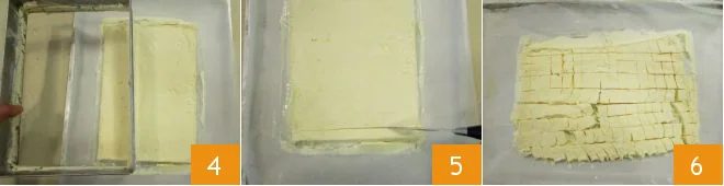 this way you will be able to remove the mold easily 4. Make cubes of about 0.5 inch (1 cm), creating a grid with the blade of the knife (5-6). Place it back in the freezer for at least 3 hours.