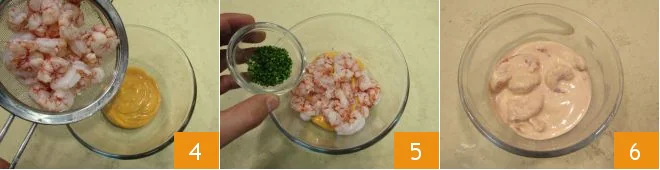 Drain and place them in a bowl with the cocktail sauce 4, add the chives 5 and stir to flavor the shrimps 6, store the shrimp cocktail in the refrigerator.