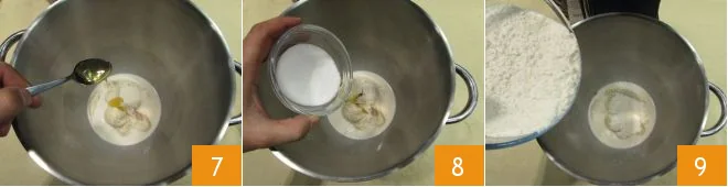 the malt 7, the sugar 8 and the sieved flour 0 9.