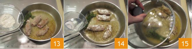 Add pepper too 10, brown them for 3 minutes on one side, then turn them and brown them for 1 minute on the other side 11. Sweat with white wine 12 and let it evaporate.