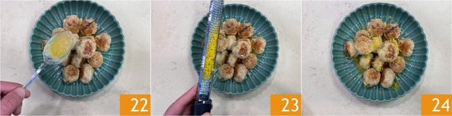 Season with some fresh thyme leaves 7 and grate the zest of one lemon directly into the bowl 8. At this point, mix all the ingredients with your hands until you obtain a homogeneous, soft but compact mixture 9.