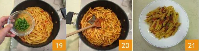 Add the chopped parsley 19, stir once more 20, and serve your penne all'arrabbiata while still hot 21.
