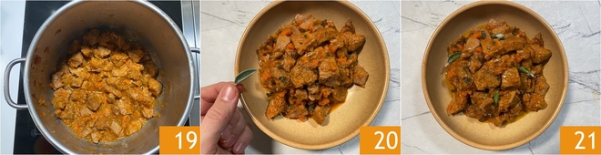 If you want a drier stew, keep the pot on the heat for another couple of minutes 19. Serve it with fresh sage leaves 20 and your pressure cooker stew is ready to be served 21!