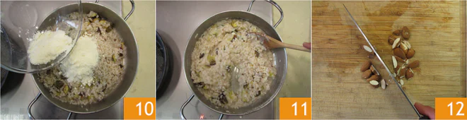 Flavor with grated Parmesan 10. Mix well 11. Coarsely chop the almonds 12.