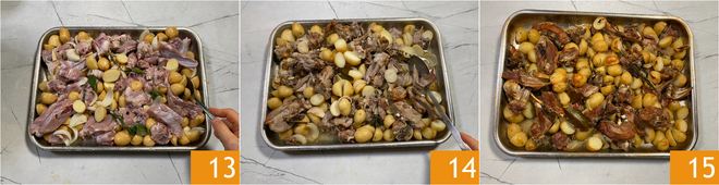 Toss together 13 and cook in a preheated conventional oven at 392°F for about 90 minutes: we recommend turning the meat every 20 minutes for even cooking 14. Remove from the oven and serve your roasted lamb with potatoes immediately 15!