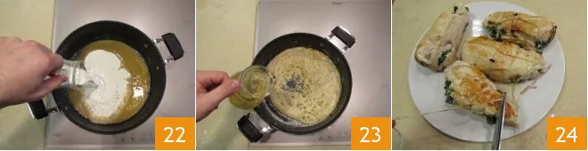 A truly mouth-watering second course: ricotta and spinach stuffed chicken breast are simple to prepare and will win everyone over. Stuffed chicken breasts immersed in a delicate tasting sauce, made with a roux base to which vegetable broth and cream is added. We received lots of requests for versions with shrimps and at last, here is a brand new one! You'll discover how you can bring a truly exquisite dish to the table in no time at all! Serve it with some roast vegetables to complete this dish in a delicious way. Fire up your stove and let's get started!
