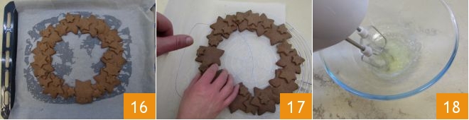 Bake in a preheated static oven at 340°F for 15 minutes (if using a convection oven, you can test by baking one star of each size and better adjust with time and temperature, usually 20°F less and 8-10 minutes less than the static oven). When the stars are cooked 16, gently transfer them to a rack to cool completely 17. Meanwhile, prepare the royal icing: in a bowl, place the egg whites and start beating them with an electric mixer 18.