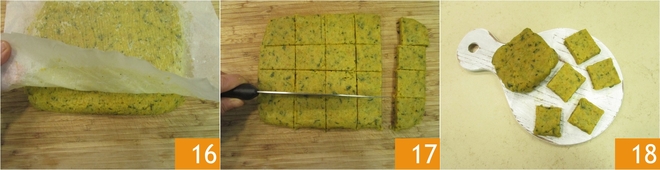 After this time has passed, remove the parchment paper from the solid mixture (which won’t be completely frozen due to the salt) 16 and divide it into 20 small cubes of around 1 oz (30 g) each 17. Your vegetable bouillon cubes are ready to be stored or used 18!