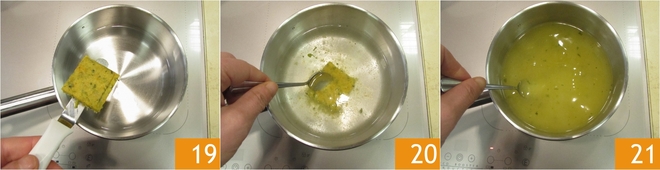 To use the vegetable bouillon cubes, we recommend dissolving one 1-oz (30-g) cube in 4¼ cups (1 L) of water 19. Stir well to make it dissolve completely 20, and your vegetable broth will be ready to go 21!