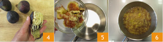 In the meantime, peel 200 g of figs 4, put them in a small pot 5, and cook over medium heat for about 5 minutes, stirring occasionally to break them down completely 6. Then remove from heat and let cool.