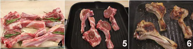 and fresh rosemary 4. Leave the seasoned chops to marinate in the fridge for about 30 minutes. After marinating, they will be ready for cooking. Heat a cast iron grill and cook the chops over high heat for about 4 minutes per side 5. Once the chops are cooked, serve your grilled lamb chops very hot 6 accompanied by a few slices of lemon.