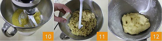 Knead with the paddle until all the ingredients are combined 10. Remove the paddle, attach the dough hook, and start adding the room temperature butter, cut into pieces, a little at a time, allowing the dough time to absorb it 11. Continue kneading until the butter is completely incorporated and the dough is smooth 12.
