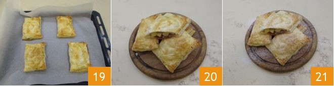 After this time, remove them 19 and let them cool slightly on a cutting board or serving plate 20. Enjoy your apple and culatello pastries 21!