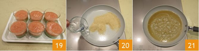 add the syrup 7 and blend until you get a smooth and homogeneous mixture 8. Divide the mixture into 6 glasses, filling each with about 2.8 oz of mixture 9. Place the glasses in the refrigerator and let them set for 30 minutes.