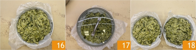 Spread it out using a drizzle of oil 16. Cover with a lid 17 and let rise at room temperature for about 1 hour and 30 minutes, if necessary up to 2 hours. After this time, recover the risen pizzas 18