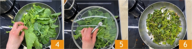 Add the friarielli 4, cover with a lid 5 and let cook for about 10 minutes over medium heat, until they have wilted 6.