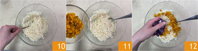 Mix and let it cool slightly 10. Then add the pumpkin cubes 11 and the cabbage 12.