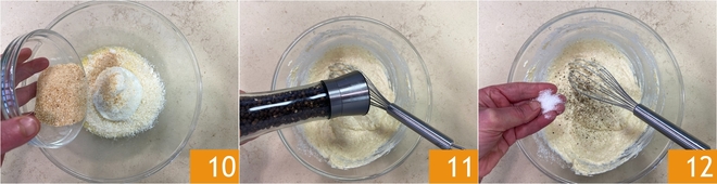 Also add the breadcrumbs 10 and season with a grind of pepper 11 and a pinch of salt 12.