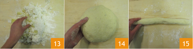 Knead with your hands 13 until you get a soft but compact dough 14. Take a portion of dough at a time and form logs about 3/4 inch thick 15.