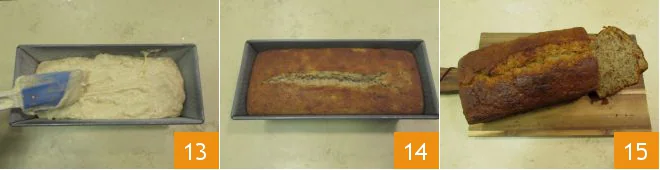 Pour the dough into the 9x3.5" (22.5x8.5 cm) plumcake pan and level it off 13. Cook in a static oven preheated to 350° (180° C) for about 60 minutes. Try the toothpick test at the end of cooking, then remove your banana bread from the oven 14 and let it cool before removing it from the pan. Enjoy the banana bread alone 15 or with butter, peanut butter or jams.