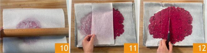 Mix to obtain a smooth cream 16. Then bake your beetroot crackers and let them cool, then enjoy them with the cheese spread 18.