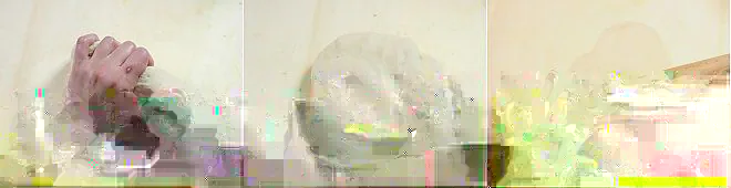 Transfer the dough onto a pastry board and work it with your hands 4; form a ball and flatten it with your hands 5, then roll out the dough with a rolling pin to a thickness of about 1/4 inch 6.