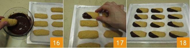 then divide them into cigars about 3 inches long and weighing approximately ½ oz each 10: with these quantities, you should get about 42 cookies. Transfer the obtained cigars onto a baking sheet lined with parchment paper 11 and bake the cookies in the preheated static oven for 15 minutes at 375°F. Once baked, remove the cookies from the oven 12 and let them cool slightly.