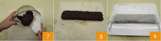 until you get a homogeneous and soft mixture 7. Transfer it onto a sheet of baking paper that you have placed on the work surface 8. Using a dough scraper, shape the mixture into a rectangle measuring approximately 12.5x3 inches 9 and place it in the refrigerator for 30 minutes.