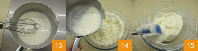 Whisk to obtain a smooth cream 10 11. In a separate pan heat the heavy cream and when it is just about to boil turn off the heat, squeeze the gelatin and dissolve it in the cream 12.