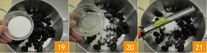 Also add the sugar 19, the lemon juice 20 and the grated zest 21.