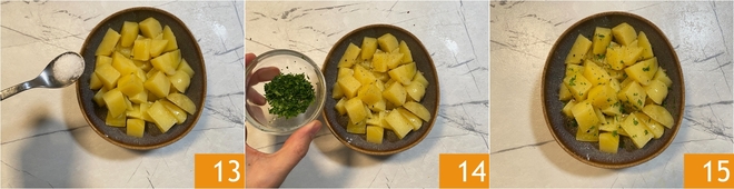 Add salt 13, pepper, and parsley 14. Your boiled potatoes are ready to serve 15!