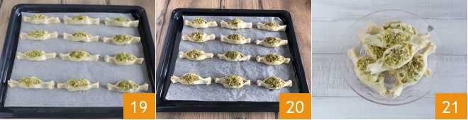 Place the candies on a baking sheet lined with parchment paper, sprinkle them with pistachio crumbs 19 and bake in a static oven at 356°F for about 20 minutes until golden brown 20. Once cooked, remove your candies from the oven and let them cool slightly before enjoying them 21.