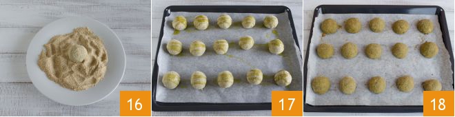 Roll each meatball in the breadcrumbs 16. Place the meatballs on a baking tray lined with parchment paper. Drizzle with olive oil 17. Bake in a preheated static oven at 350°F for about 15-20 minutes until golden 18. Your meatballs are ready to be enjoyed.