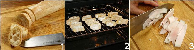 Slice the bread 1 into 16 slices about 0.4 inches thick. Place the bread slices to toast in the oven at 392°F 2 until they turn golden (it will only take a few minutes), then remove them and let them cool slightly. Thinly slice the lard 3.