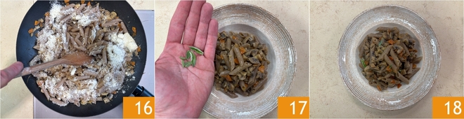 Now all you have to do is stir well to mix all the ingredients 16, scent with sage leaves 17, and your dish is ready to be served! 18.