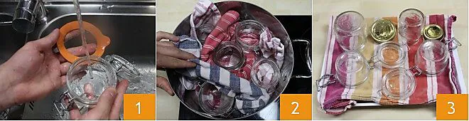 To prepare the candied cherries, first you need to get glass jars for the preserve (twist-off type with metal cap or with spring lid and rubber gasket) and proceed to sanitize them according to the Ministry of Health guidelines provided at the end of the recipe. Start by washing the jars thoroughly under running water; for jars with airtight closure, also wash the gasket well and set it aside to dry 1. Line a large pot with high sides with a clean cloth and place the jars inside the pot. Then wrap one or more towels around the jars to prevent them from bumping 2. Fill the pot with water to cover the jars. Bring to a boil, then lower the heat and leave the jars in the pot for another 30 minutes. Ten minutes before draining the jars, immerse the lids to sterilize them. After the necessary time has passed, turn off the heat and let them cool. When the water is at room temperature, remove the jars from the pot and let them drain on a cloth 3.