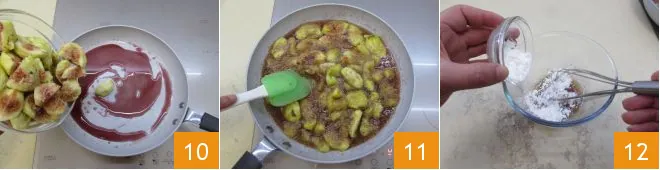 Add the liquid back into the pan 13, stir and let everything cook for 5-6 minutes until the compote thickens 14, and place it in a baking dish to cool 15.