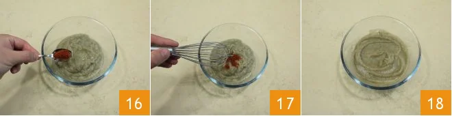 Finally, add the paprika 16 and mix with whisks to blend the ingredients well 17: your eggplant caviar is ready to be served 18, accompanied by fresh vegetables or spread on crunchy crostini.