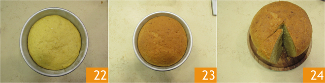 The dough should rise almost to the edge of the mold 22, so if 2 hours were not enough, let it rise for longer. Bake the crescia in a preheated static oven at 320°F for 40 minutes, placing the mold on the lower rack of the oven. After 40 minutes, increase the oven temperature to 338°F and bake for another 10 minutes: leave the mold on the lower rack if the crescia is already golden, otherwise, you can move it to a higher rack, just make sure the dome does not touch the heating element. Before removing from the oven, do the toothpick test to check the baking 23. Remove the crescia from the oven and let it cool slightly, then remove it from the mold and let it cool on a serving platter 34. Wait until the crescia is completely cool before cutting and serving it 34!